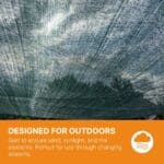 ร inoltre progettato per le realtร della vita all'aperto. Il vento, la luce del sole e le condizioni meteorologiche mutevoli non vanno proprio d'accordo con i materiali fragili. Ecco perchรฉ questa rete รจ realizzata per le condizioni esterne ed รจ disponibile in 100 GSM e 200 GSM, offrendoti la flessibilitร di scegliere l'opzione giusta per la tua configurazione. Hai bisogno di qualcosa di piรน leggero e facile da maneggiare per una schermatura generale? Scegli 100 GSM. Desideri una sensazione di maggiore robustezza per un uso piรน intensivo? Il 200 GSM ti offre quella sicurezza in piรน.